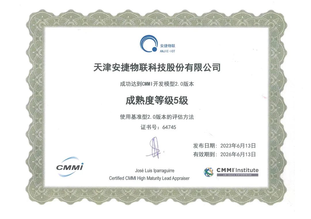 近日,米兰milan物联顺利通过全球软件领域难度最大、规格最高的软件开发能力成熟度认证CMMI 5,并获CMMI研究院ISACA颁发的CMMI 5 V2.0认证证书。